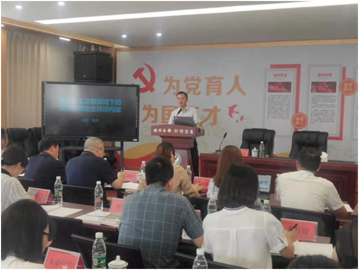 本次活动学校邀请到了成都市第四十中学校党总支书记、校长、国家、省市心理危机干预专家杨伟,为与会教师作了关于“基于学生发展视域下的校园心理安全网络构建”的讲座。
