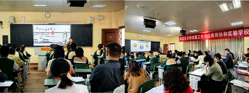 2025年4月23日,时逢第30个世界读书日,下午双流区名师刘勇工作室走进双流中学协和实验学校,开展“送教启新篇,文道探融合”主题教研活动。本次活动通过课堂示范、互动研讨、专题讲座、赠书仪式、专家总结五个环节,为协和实验学校文言文教学注入新活力,展现了古典文化与现代教育的深度融合。