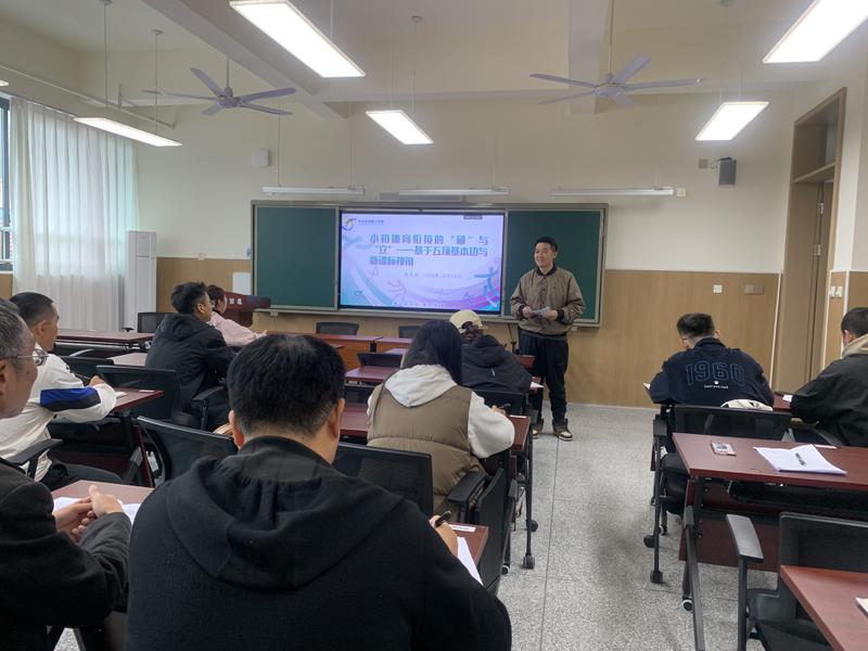 活动最后,朱太杰老师以《小初体育衔接的“破”与“立”——基于五项基本功与新课标视角》为题开展专题讲座。他围绕小初体育教学衔接的痛点与堵点,从五项基本功训练强化、新课标理念落地路径、教学内容衔接科学设计等方面深入讲解,结合真实教学案例剖析“破”除衔接障碍、“立”足素养提升的具体方法,为在场教师厘清了小初体育衔接教学思路,提供了可直接落地的教学策略。